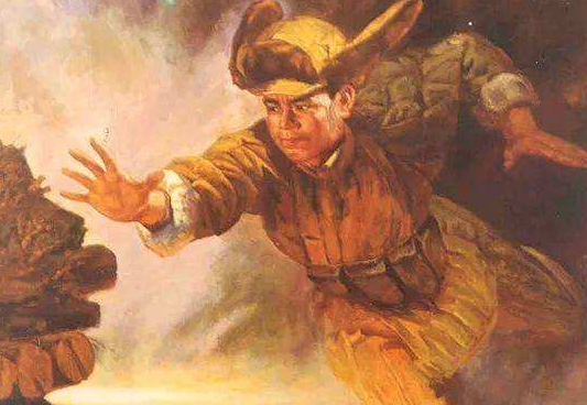 由于桥型暗堡距地面超过身高,两头桥台又无法放置炸药包。危急关头,他毅然决然地用左手托起炸药包,右手拉燃导火索,高喊:“为了新中国,冲啊!”碉堡被炸毁,董存瑞以自我的生命为部队开辟了前进的道路,年仅19岁。