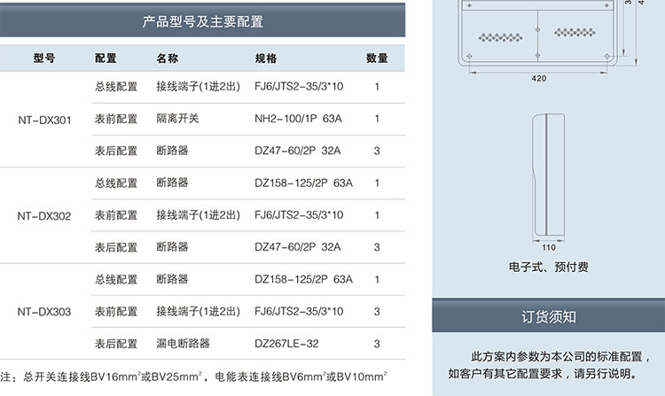 单相三表位电表箱(上下结构)产品型号及配置,南腾电表箱分享